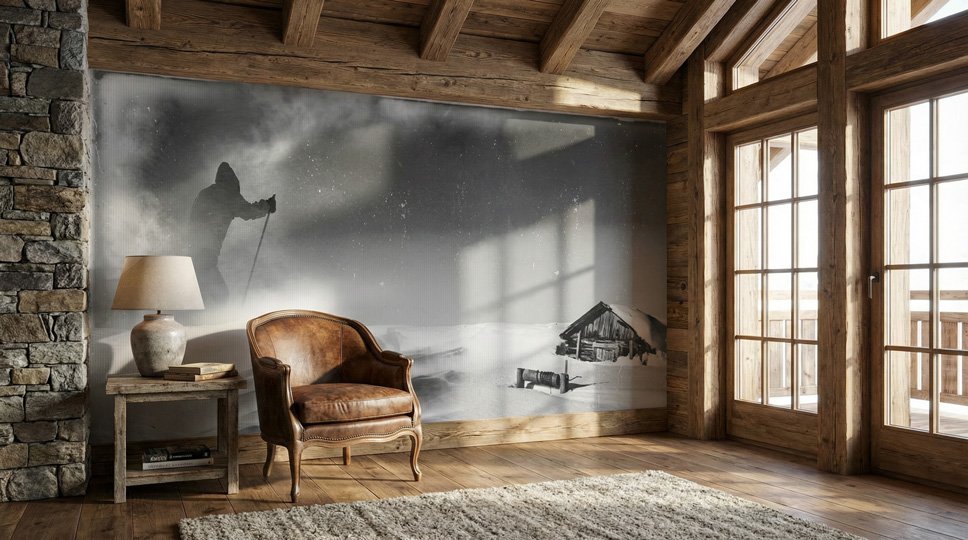 In una baita moderna, usala per 'spezzare' la continuità del legno su una parete singola (magari dietro la testata del letto o nel disimpegno): creerà un effetto 'finestra sul passato' che dilata lo spazio e aggiunge un tocco di nobiltà letteraria.