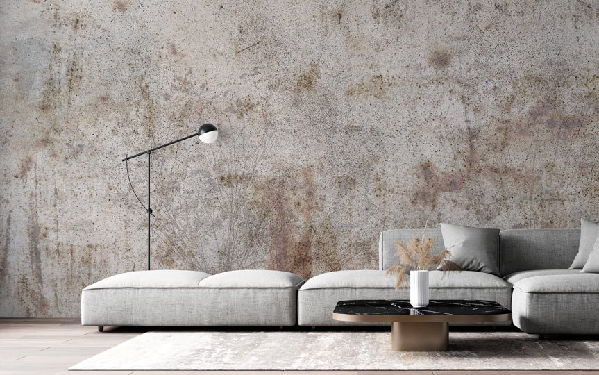 carta da parati Entropia, il gioco dell’estetica tra Ruggine, il Cemento e la botanica