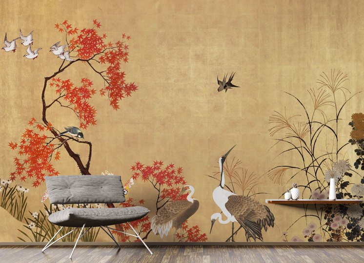 Nella carta da parati “Byōbu” è presente la saggezza antica in cui l’Oriente ha sempre trattato l’oro: non come esibizione di ricchezza, ma come un espediente per trattenere la poca luce che filtra nelle stanze d’ombra.